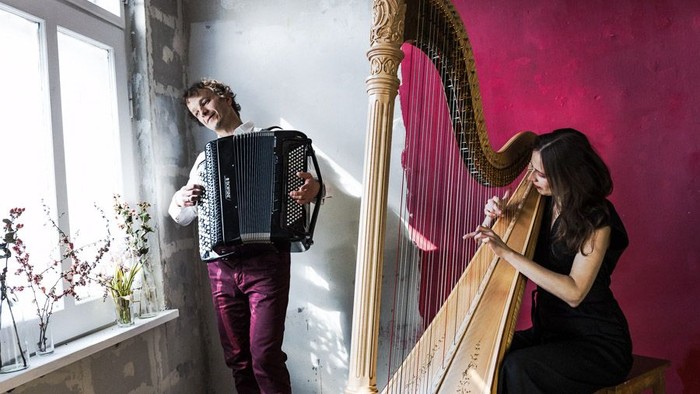 Anna Steinkogler (Harfe) und Valentin Butt (Akkordeon)