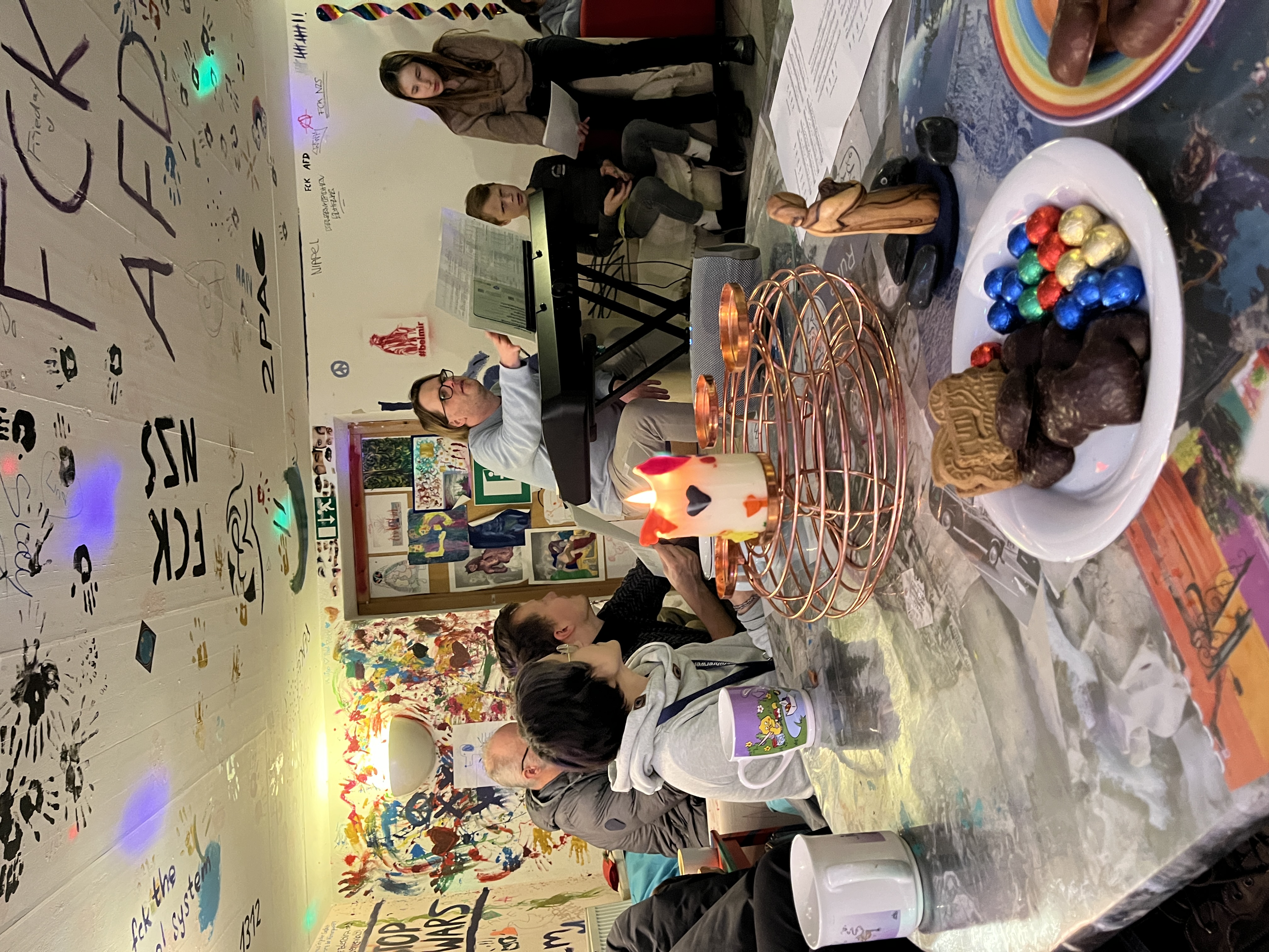 Heute haben wir es uns im Jugendkeller des Gemeindehauses der Friedenskirche so richtig gemütlich gemacht und sangen fröhlich, und gar nicht schief unter Tim Oders Anleitung und Begleitung am Piano Weihnachtslieder auf Englisch. Sogar auf Wunsch von einigen Vielen war „Last Christmas“ dabei.