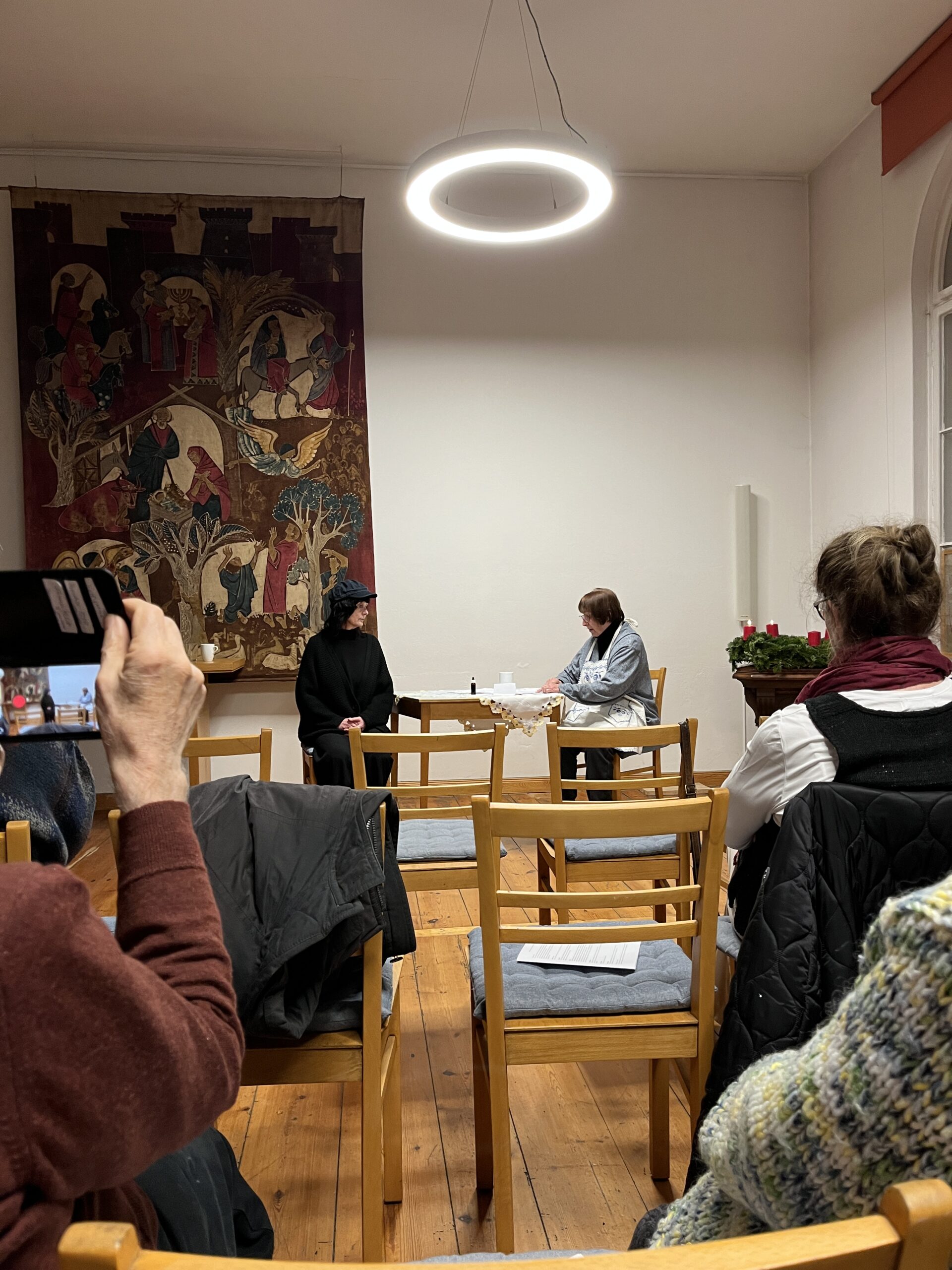 Zum 7. Türchen waren wir im Gemeindehaus Nordend zu Gast und die Theatergruppe Altweibersommer zeigte ihre Interpretation vom Stück „Cyankali. Ein Jahrhundert“ von Friedrich Wolf, das seinerzeit 1929/30 das erfolgreichste Schauspiel in Deutschland war und auch weltweit zur Aufführung kam. Handlung ist der Paragraf 218 und die Auswirkung auf die Frauen. Ein starkes Thema eindrucksvoll gespielt von den fünf Frauen der Theatergruppe.