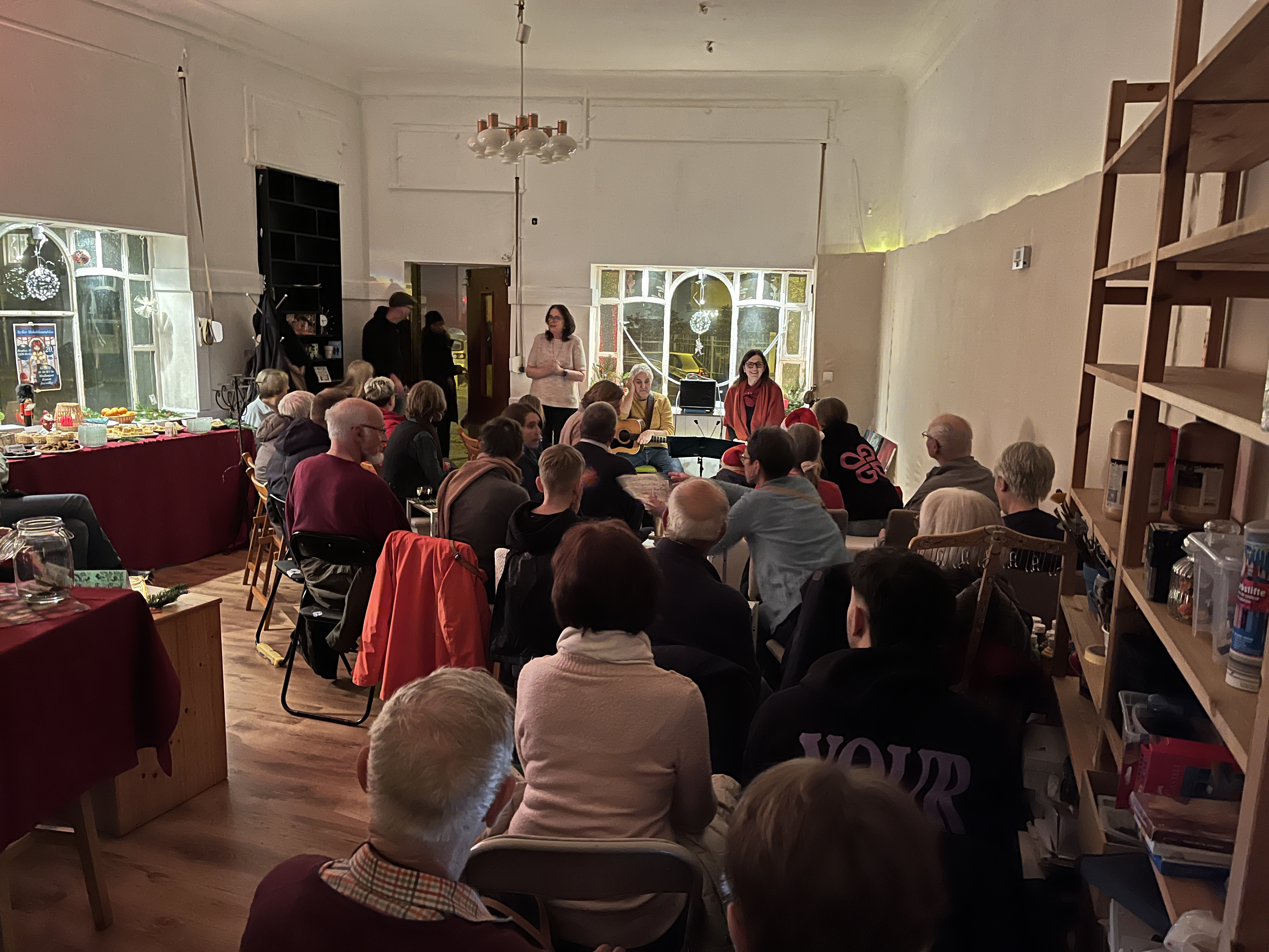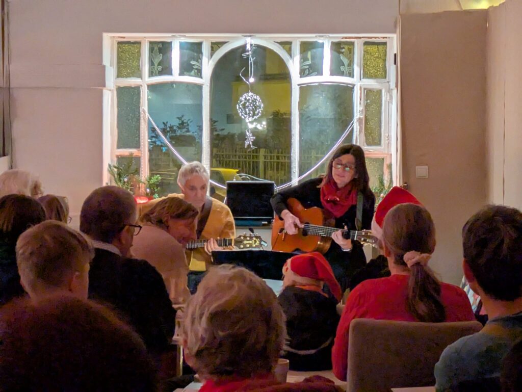 Rappelvoll war es und alle lauschten der wunderschönen Stimme und der Gitarre von Susanne Werth und ihrem Kollegen Friedrich Barniske von der Gruppe ›Wasteland Green‹.