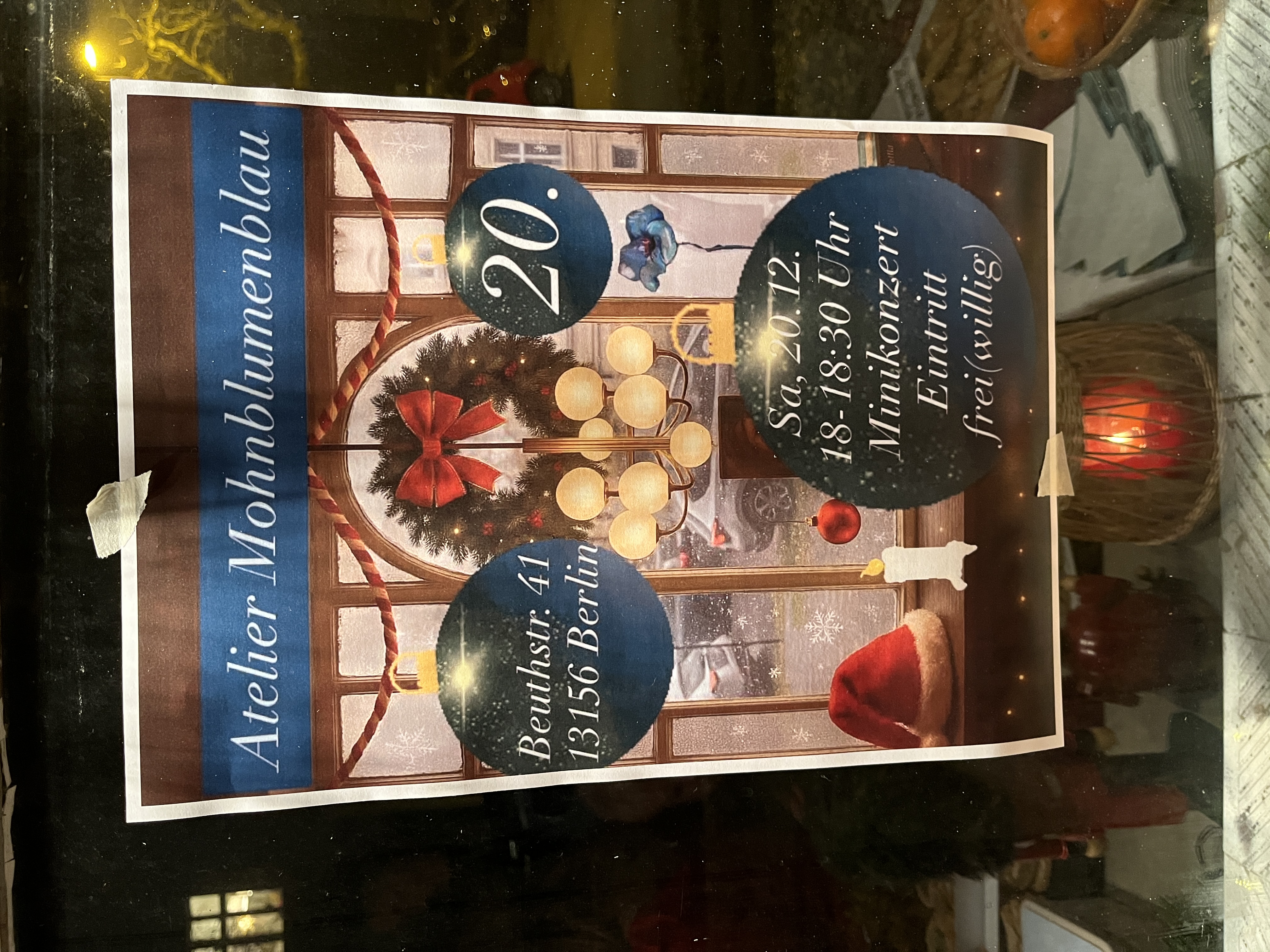 Das Mini-Candlelight-Konzert lockte am Samstagabend große und kleine Menschen in das neue Atelier ›Mohnblumenblau‹ der Künstlerin Susanne Hildebrandt in die Beuthstraße 41.