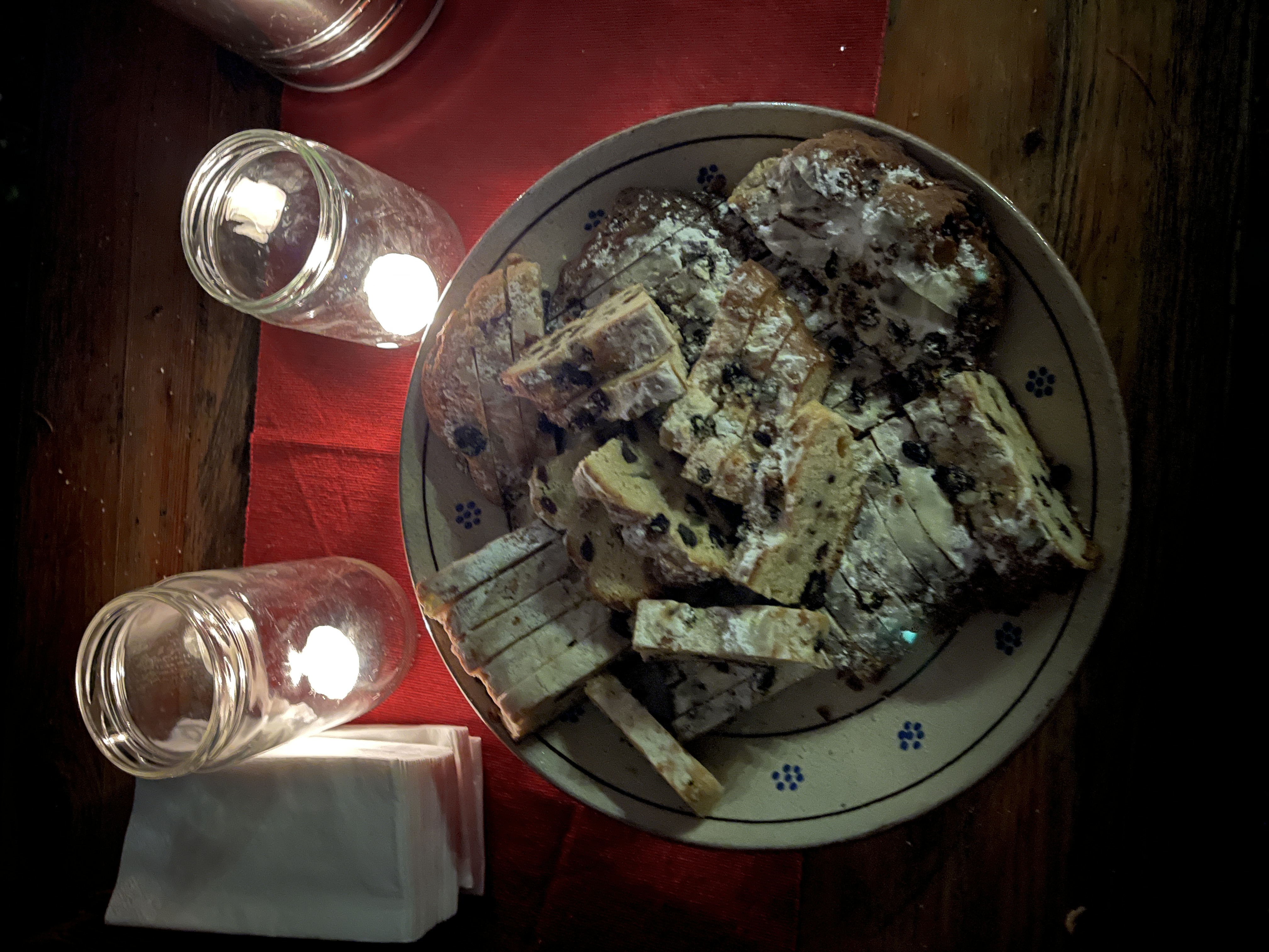 Dazu gab den sehr leckeren selbstgebackenen Stollen und heiße Getränke.